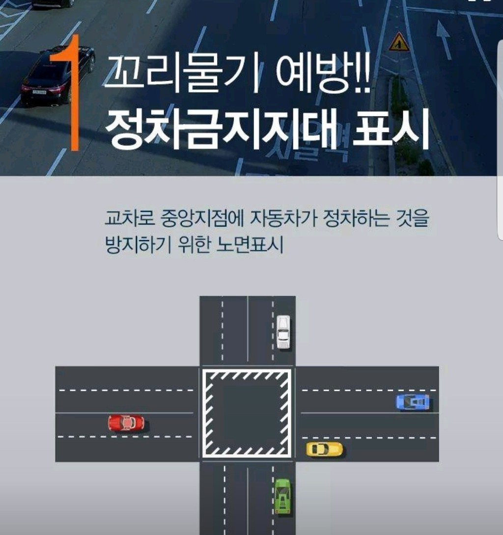 꼬리물기 예방!! 작성자na teacher|작성시간18.08.10|조회수577 목록 댓글 0 글자크기 작게가 글자크기 크게가 꼬리물기 예방!!정차금지지대 표시꼬리물기 예방!!정차금지지대 표시교차로 중앙지점에 자동차가 정차하는 것을 방지하기 위한 노면표시 다음검색 현재 게시글 추가 기능 열기 북마크 공유하기 신고 센터로 신고 댓글 댓글 0 댓글쓰기 답글쓰기 댓글 리스트