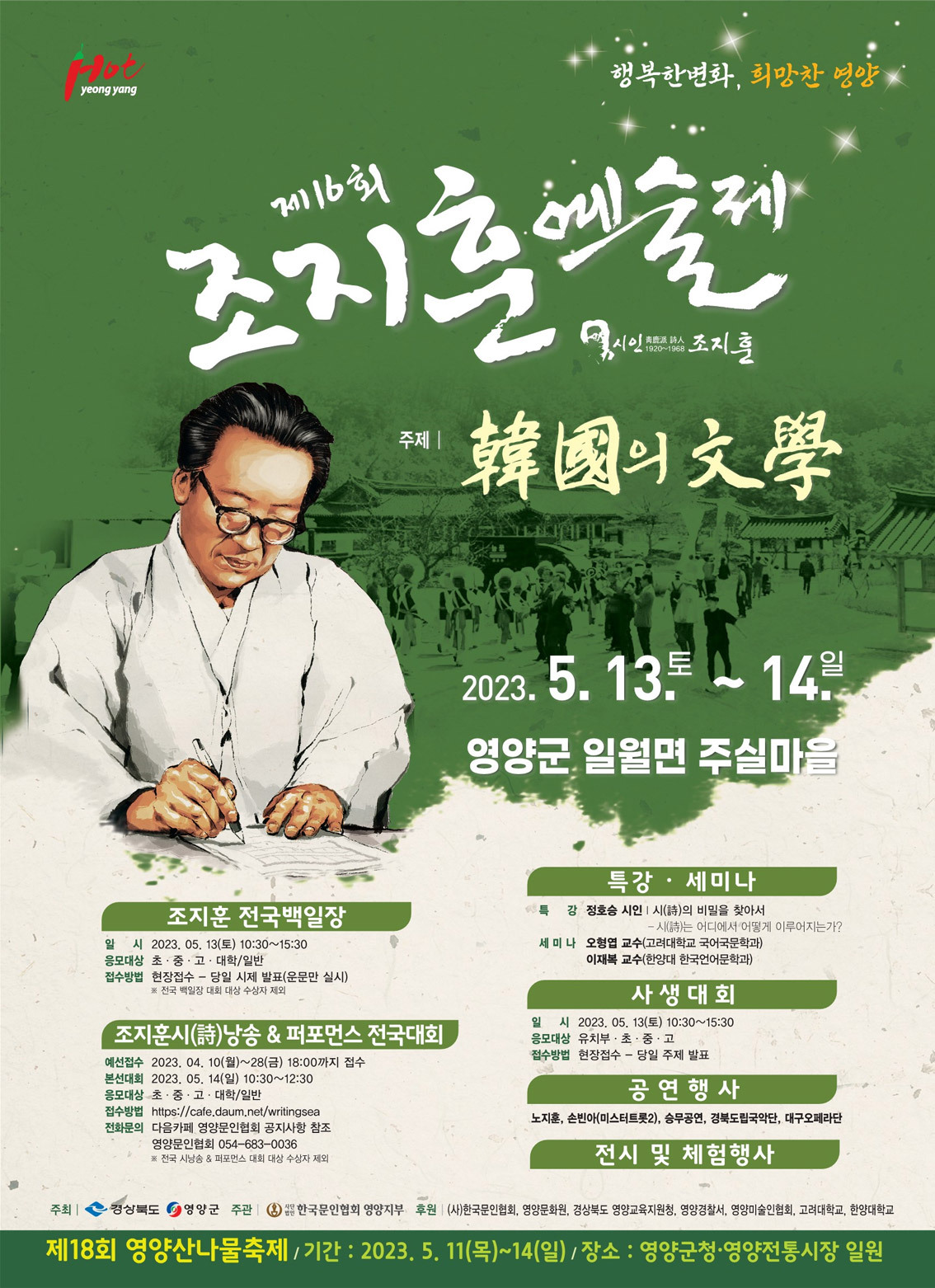 제16회 조지훈예술제 안내입니다 작성자외씨버선길|작성시간23.04.20|조회수38 목록 댓글 0 글자크기 작게가 글자크기 크게가 지훈문학관 바로가기입니다. 지훈문학관 (yyg.go.kr)지훈문학관한옥 집안의 풍경 햇살나는 오후 산촌 집 한채의 모습 청정자연과 푸른감성이 어우러진곳 jihun literary house 지훈문학의 향기 문학소년,조지훈 순수문학을 지향하였던 지훈이었지만 당대의 시대www.yyg.go.kr 다음검색 현재 게시글 추가 기능 열기 북마크 공유하기 신고 센터로 신고 댓글 댓글 0 댓글쓰기 답글쓰기 댓글 리스트