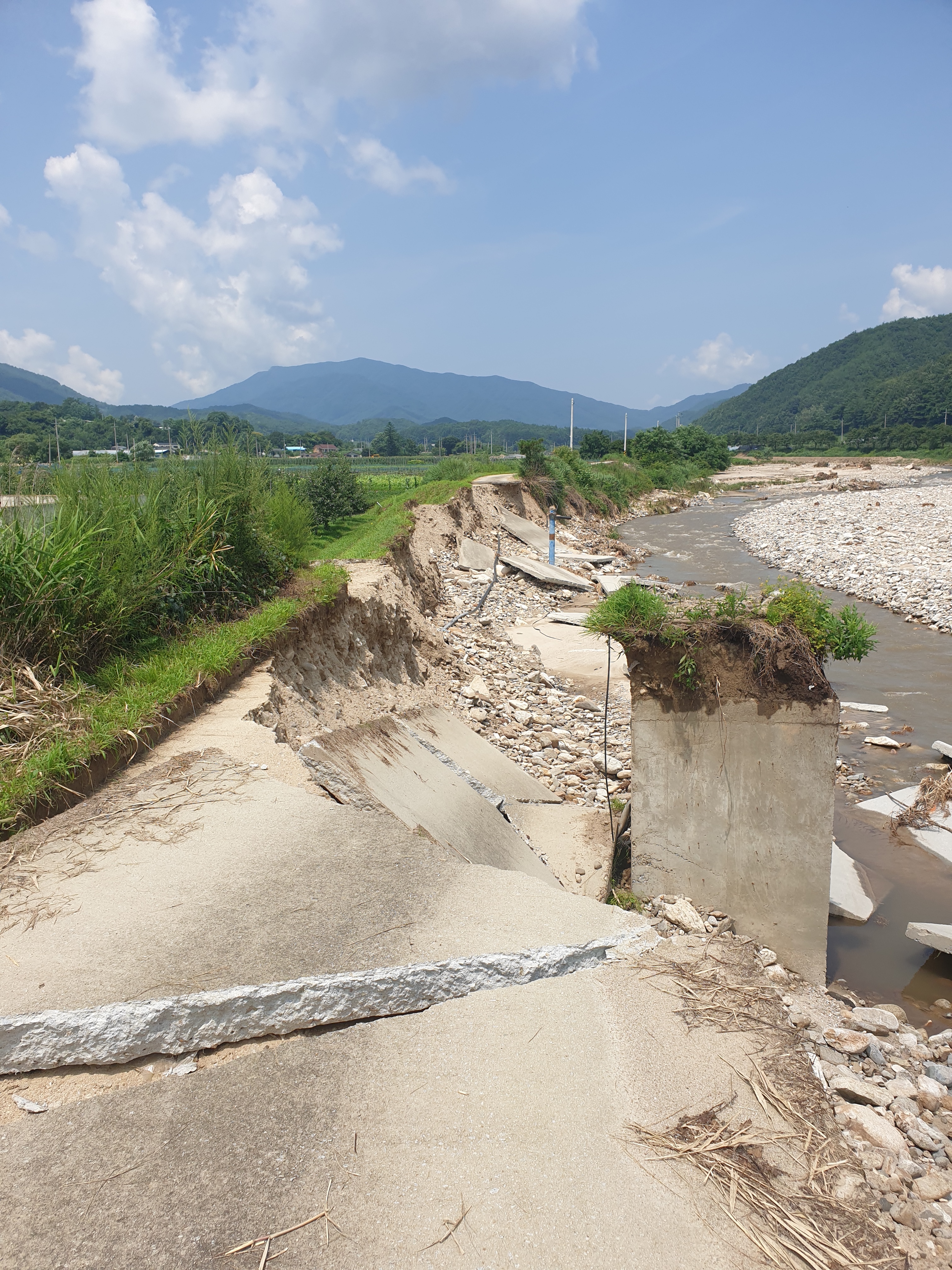 거포사과마을, 새터, 도심리지역 및 백두대간 수목원 뒤 임도길 등 산사태, 제방둑길이 무너지고, 길이 유실된 지역이 많습니다.