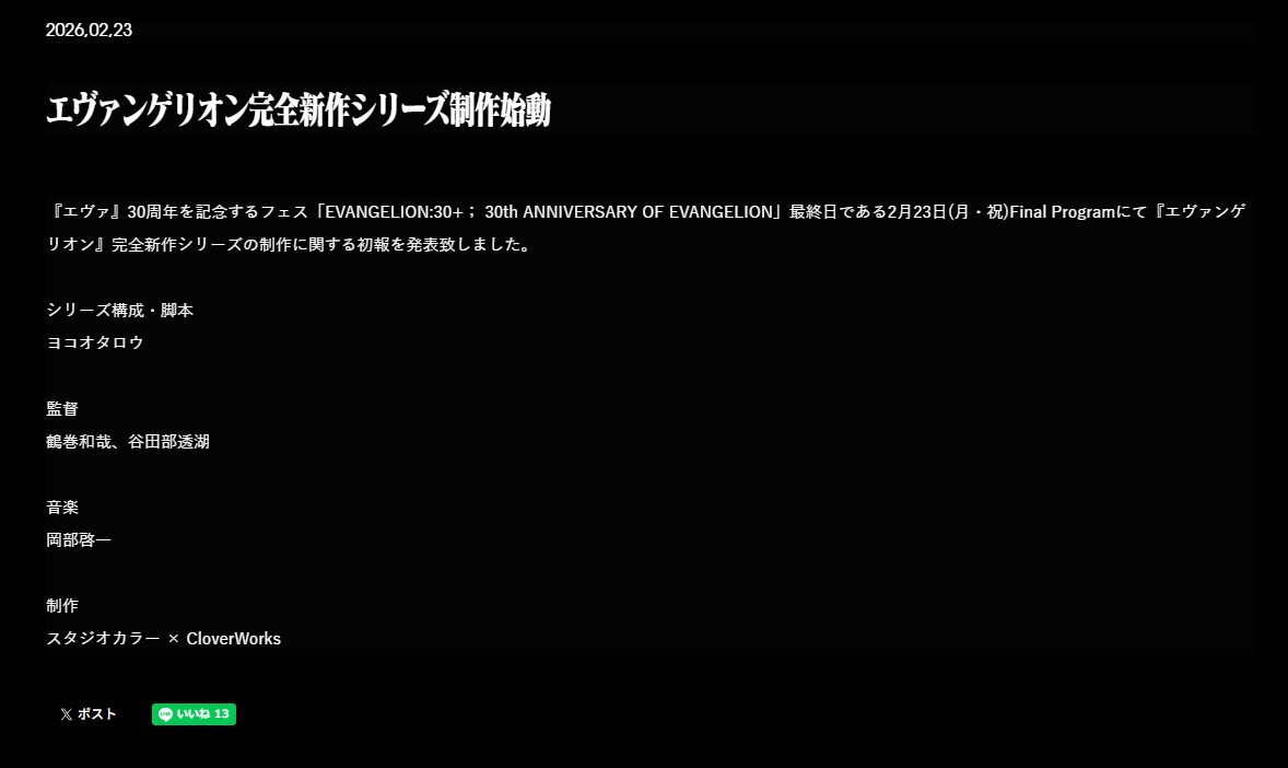[스크랩] 에반게리온 30주년 기념사이트 작성자미나리|작성시간26.02.25|조회수19 목록 댓글 0 글자크기 작게가 글자크기 크게가 에반게리온 30주년 기념사이트 https://30th.evangelion.jp/ 는 이벤트, 패션, 아이 다음검색 스크랩 원문 : 원펀맨 현재 게시글 추가 기능 열기 북마크 공유하기 신고 센터로 신고 댓글 댓글 0 댓글쓰기 답글쓰기 댓글 리스트