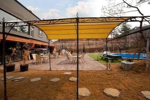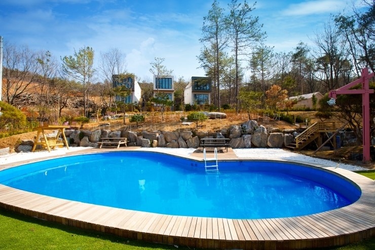 싱그러운 자연에서 즐기는 야외풀장 과 바베큐시설, 리조트안에 위치한
