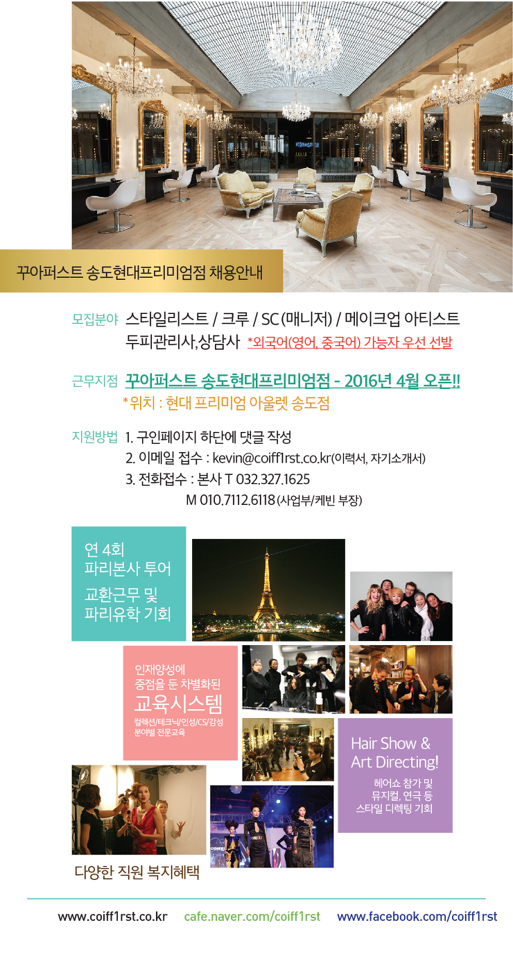 ■ 모집분야 : 스타일리스트/크루/SC(매니저)/메이크업아티스트/두피관리사,상담사