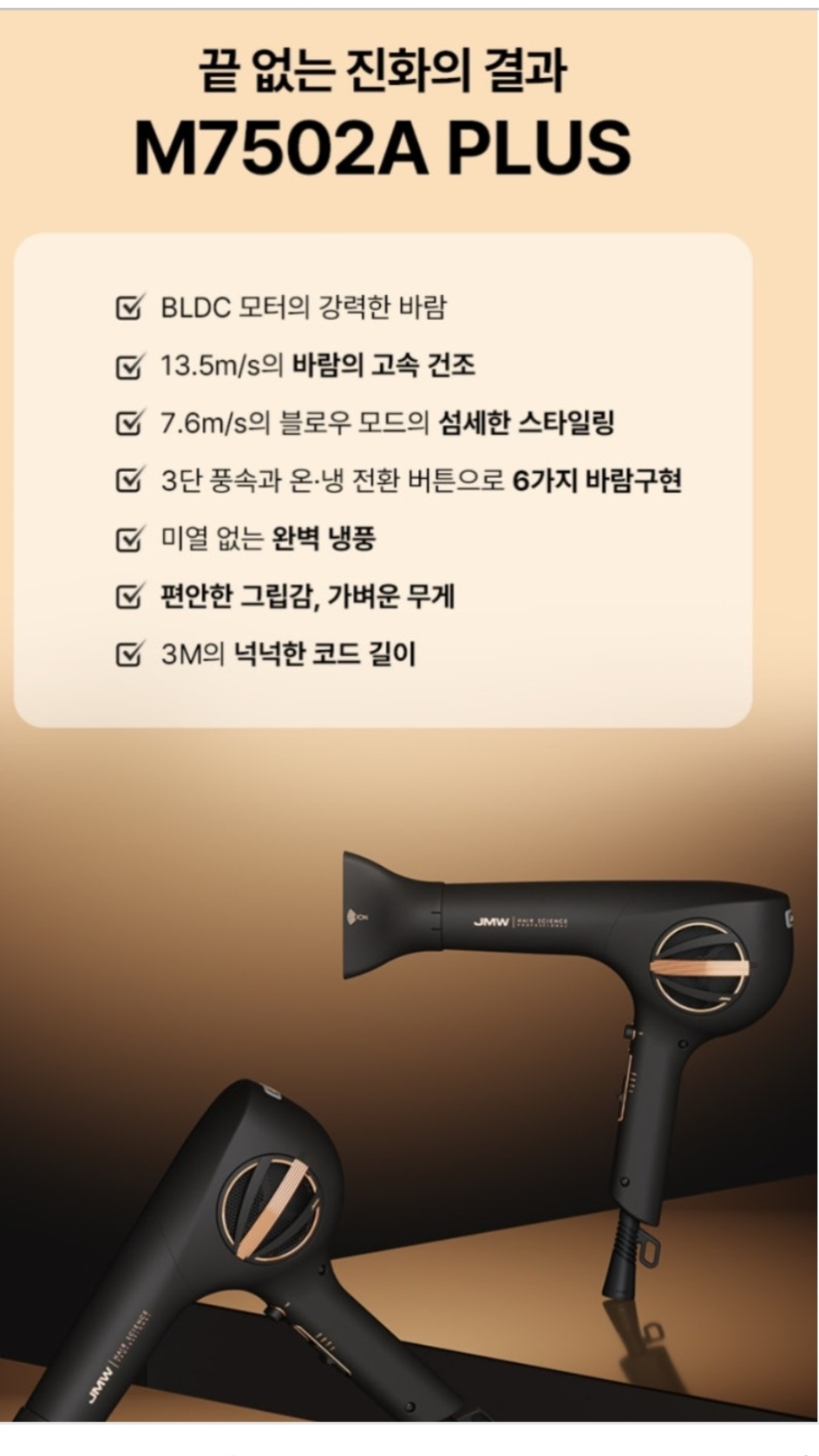 JMW. M7502A PLUS 모델은 업소용으로 줄 길이가 3M 에 1800W 입니다