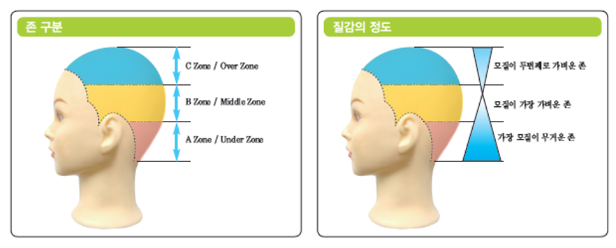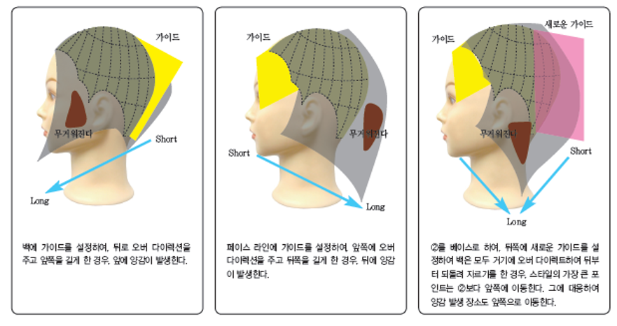 헤어 커트는 기본적으로 가이드축이 짧고 중점축이 길어진다.