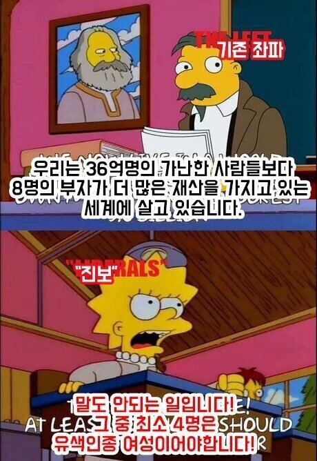 오늘날 민주진보 리버럴들은 약자에게 삶을 보장해 줘야 한다 말하면서도 대기업 대자본 일진들과 맞서 싸우려 하진 않는다. 대기업 대자본 일진들과 맞짱뜰 용기는 없으면서 페미 피씨의 잣대로 애꿎은 노동계급 남성들이나 처 패면서 자신들이 굉장히 센 것처럼, 그리고 마치 정의를 지키는 다크나이트즘 되는 양 으스대기를 즐긴다.