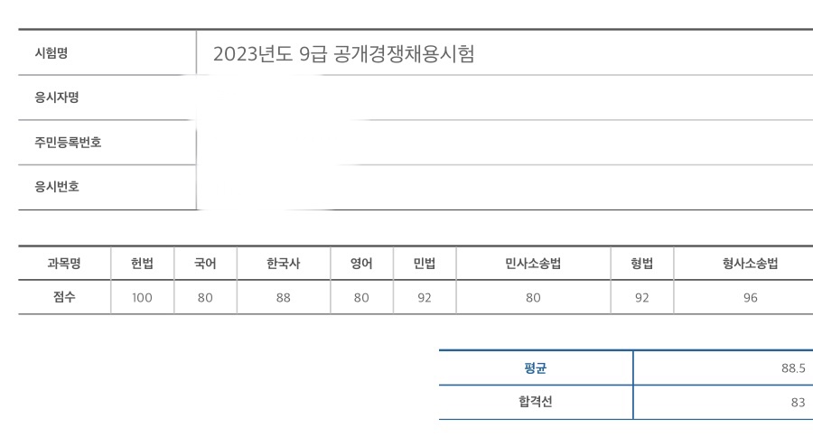 공부기간은 2022년 7월 11일 개강일부터 2023년 6월 24일 시험 당일까지이고, 대학교에서 법학을 전공했지만 워낙 대학 공부를 게을리해서(ㅎㅎㅎ) 전공 과목에서 비법대생 분들과 크게 차이가 있다고 생각하진 않습니다.