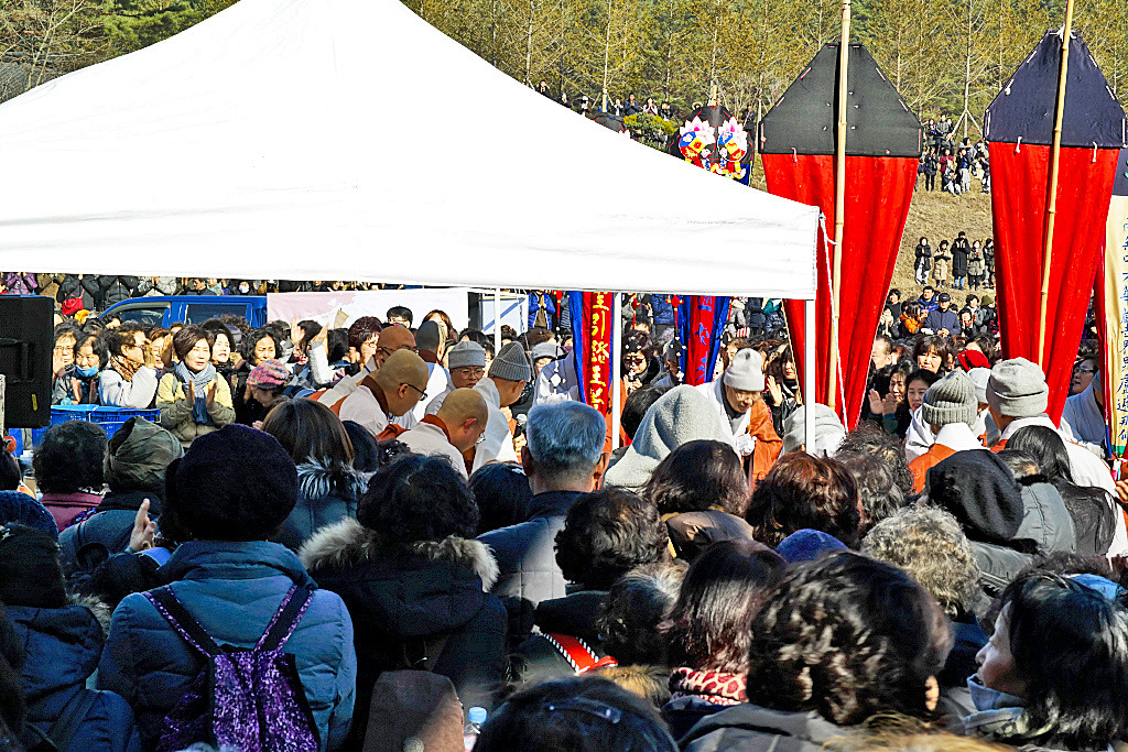 2만 여 명의 불자들이 발 디딜 틈 없이 설법전은 물론 문수법당, 공양간 등 도량 곳곳에서 영상모니터와 스피커를 통해 지난 12월7일 입재해 한달동안 이어진 화엄산림대법회 회향법회에 동참하였다.