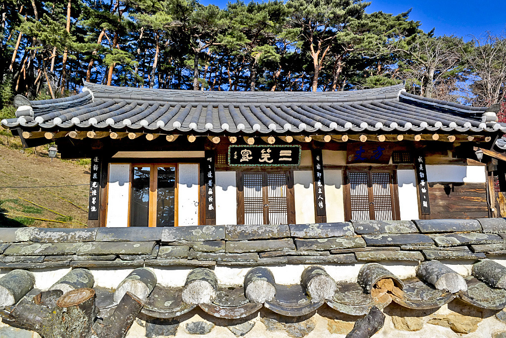 삼소(三笑)는 호계삼소(虎溪三笑)에서 따온 말로 ‘호계삼소’는 유교·불교·도교의 진리가 그 근본에 있어서는 하나라는 것을 상징하는 이야기라고 한다. 중국 송나라 진성유(陳聖兪)가 지은 ‘여산기(廬山記)’에 나온다. 동진(東晋)의 고승 혜원(慧遠·334~416)은 중국 불교 정토교의 개조(開祖)로 알려져 있다. 그는 처음에는 유학을 배웠고, 이어 도교에 심취했다. 그러나 스무살이 지난 뒤에는 승려가 되어 여산에 동림사(東林寺)를 지어 머물며 수행했다. 입산 후 그는 ‘그림자는 산을 나서지 않고, 발자취는 속세에 들이지 않는다 (影不出山 跡不入俗)’라는 글귀를 걸어두고, 다시는 산문을 나서지 않았다.