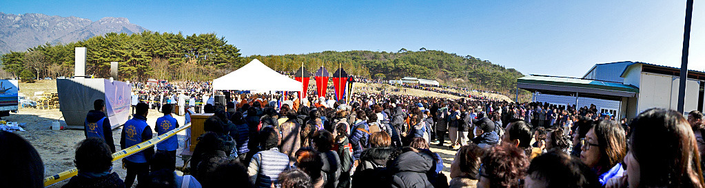 관음사 주지셨던 영산 노전 스님의 모습도 보입니다. 2만 여명이 참여해 마지막 소대의식에서 대중들이 산을 가득 메우는 진풍경