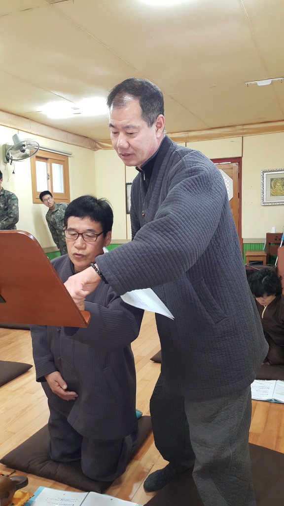 집전하고 계시는 법등 팀장님과 사회를 보고 계시는 상진 포교사님