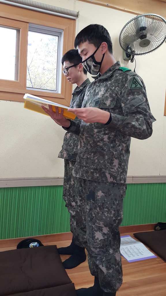 참석 장병들의 축원을 하기위한 명단 확인을 하고 있는 군종 모습