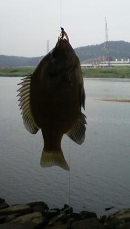 배스낚시를 하다가 부루길이 보이길래 스푼루어에 바늘을 떼고 봉돌대신 달고 플라이 낚시 바늘을 이용 다운 샷 리그(봉돌을 바늘 아래 다는 채비)로 잡은 부루길. 토종 어류 같으면 당연히 살려 줬을테니만 외래 어종이라 살려줄까 죽일까 고민하다 옆에 구경꾼한테 물어보니 살려 주라고 해서 살려 주었음.