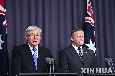 호주의 새 총리로 선출된 노동당 지도자 케빈 러드(왼쪽)와 부총리가 된 앤서니 알바니스가