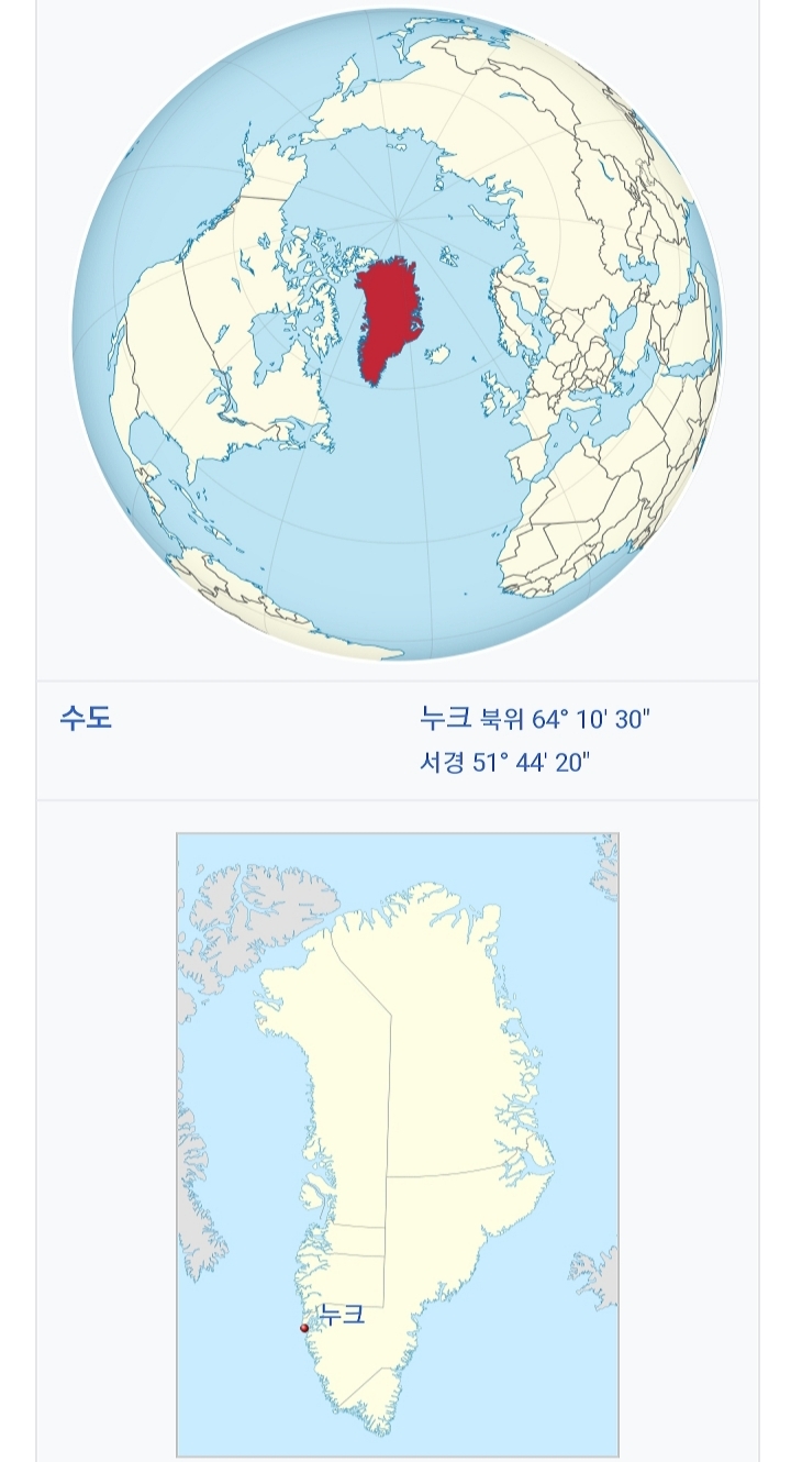 □4. 수도는 누크이다. 바다를 사이에 두고 캐나다, 아이슬란드와 국경을 접한다.