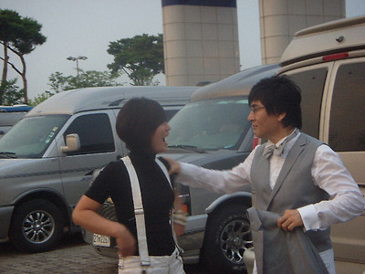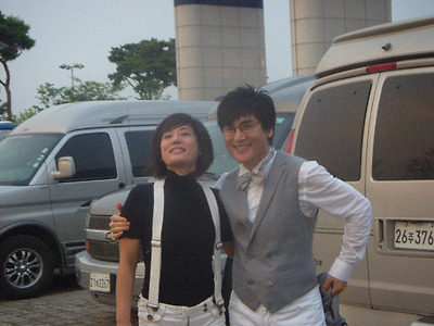 이 사실을 익히 알고 있는 나는 언제나 무대 뒷편에서 구경을 하는 편이다. 마침 뒤쪽으로 가니, 한무리의 연예인들이 모여 있었다. 텔레비젼을 거의 구경하지 않는 편인 나는 다른 연예인들은 모르겠고, " 너는 내남자"의 가수 한혜진과 가수 조광조가 눈에 들어왔다.
