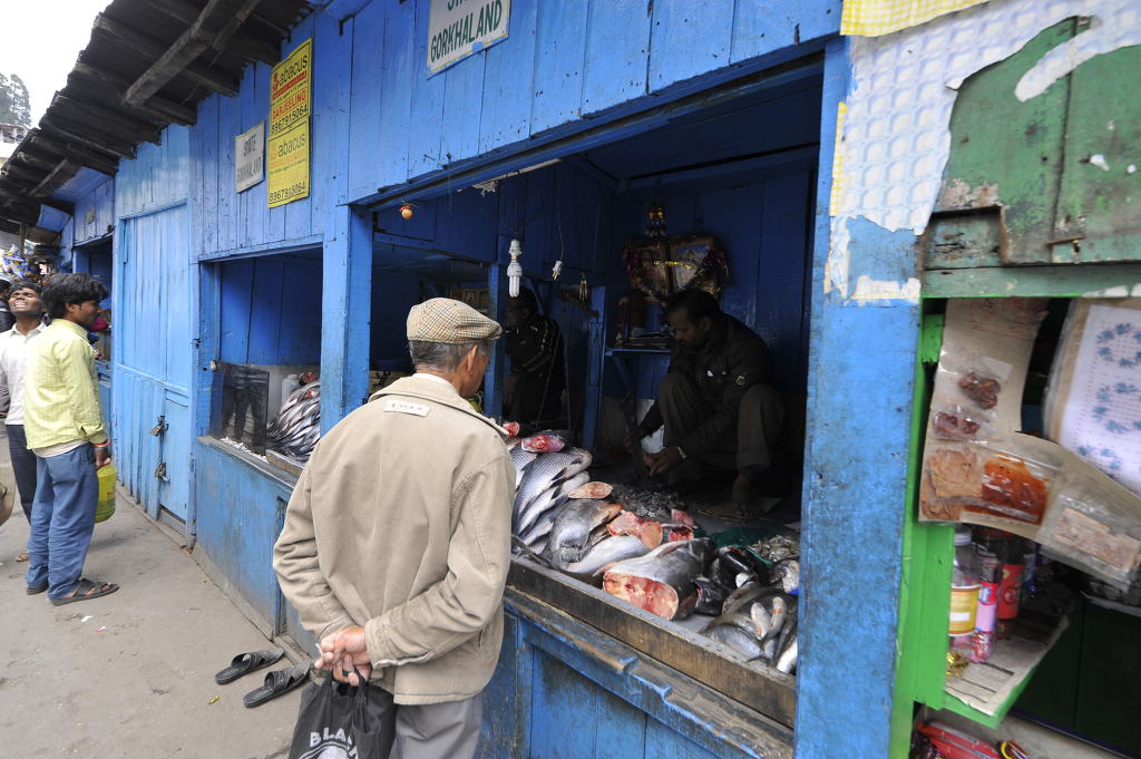 어디서 공수해 왔는지 신선한 생선을 파는 어물전들도 몇 개 다르질링 역 근처 도로 가에 있다.