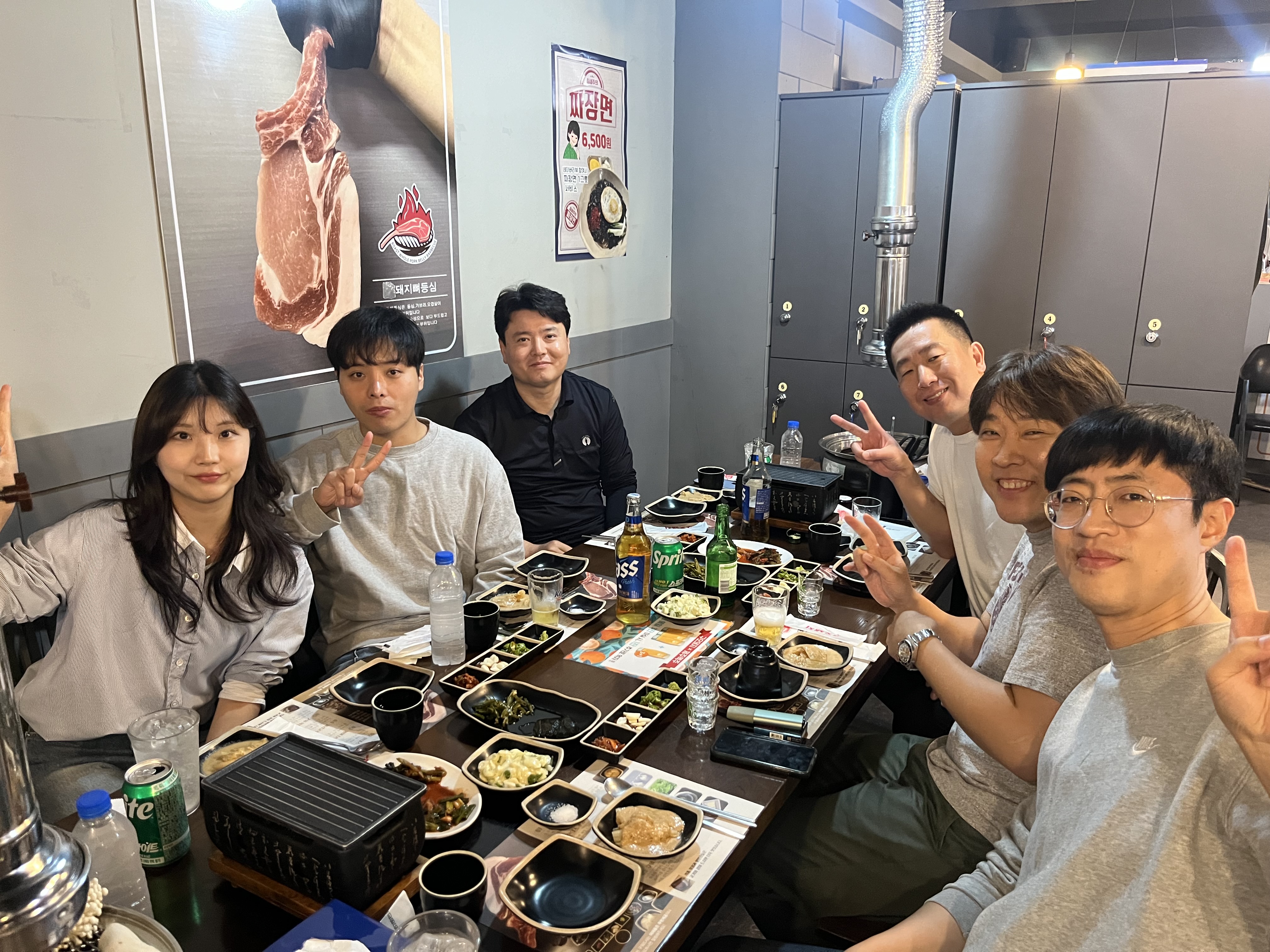 인터뷰를 마치고 근처 구오돼지에서 조별 뒷풀이겸 과제 방향에 대해 같이 논의하는 시간을 가지고 있습니다.