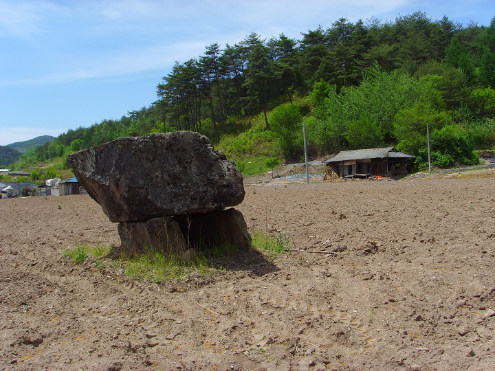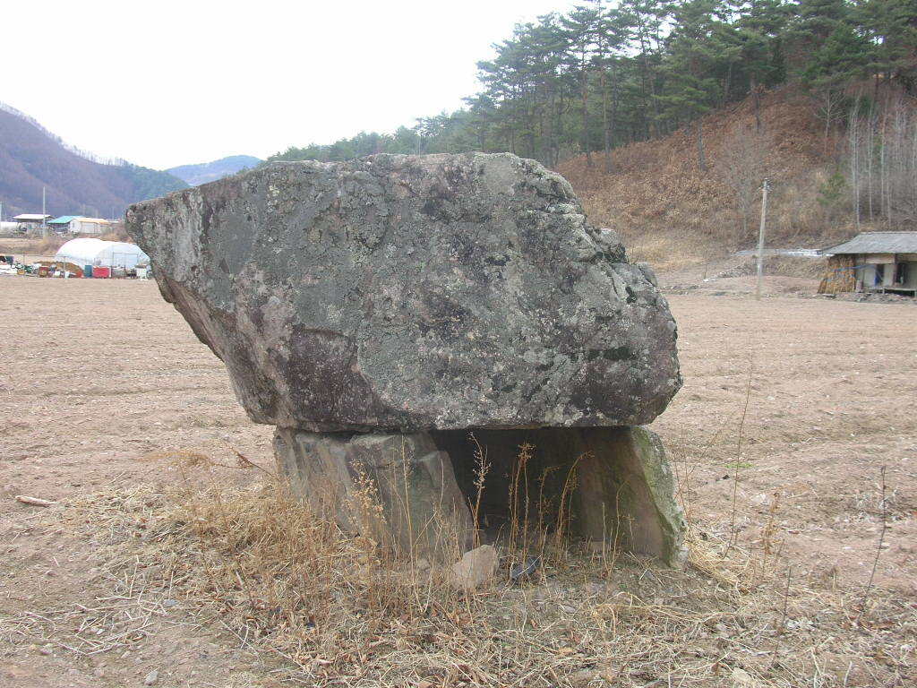 봉화군 재산면 현동리 1022-5 번지에 소재하고 있다 북방식 고인돌이라고 하지만 안타깝기 그지없다 고인돌이라고 하여 지금까지 고인돌로 불러지고 있는 것 같다 관리부실과 밭 경작에 따른 훼손으로 원형은 찾아보기 어렵고 몸체을 받치고 있는 기둥 역활을 하는 돌 하나는(사진 정면에서 우측) 시멘트로 모조한 흔적이 있다 [글 사진, 詩人 곽대근]