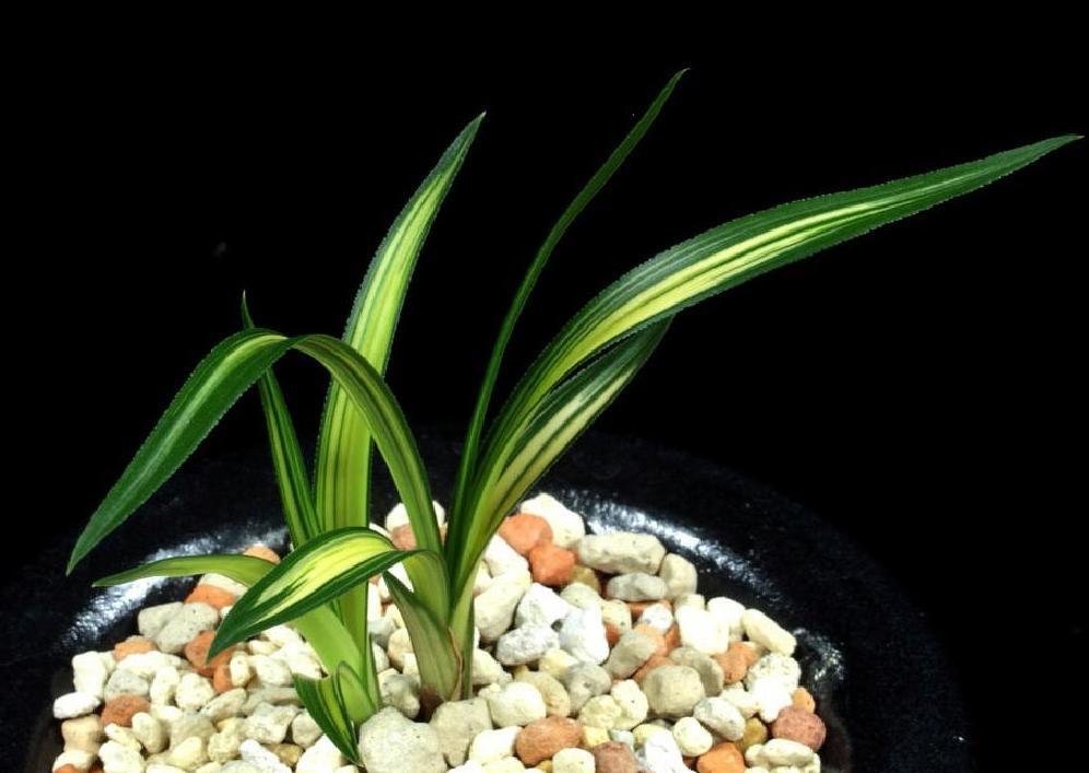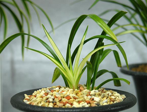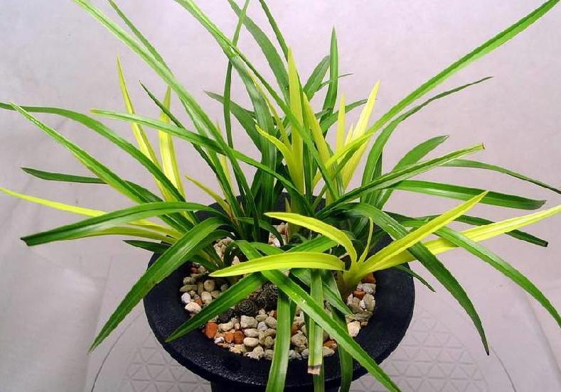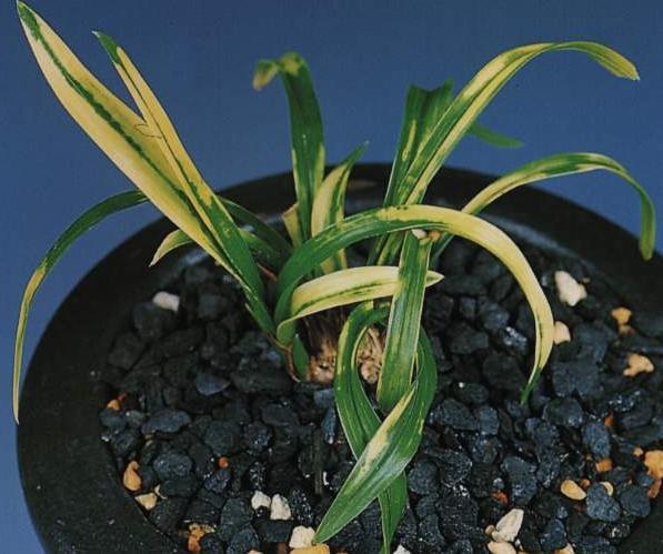 녹색을 기본으로 하는 한국춘란의 잎에 변이가 일어나 아름다운 무늬가 고정되어 선상과 반상의 무늬가 나타난다.