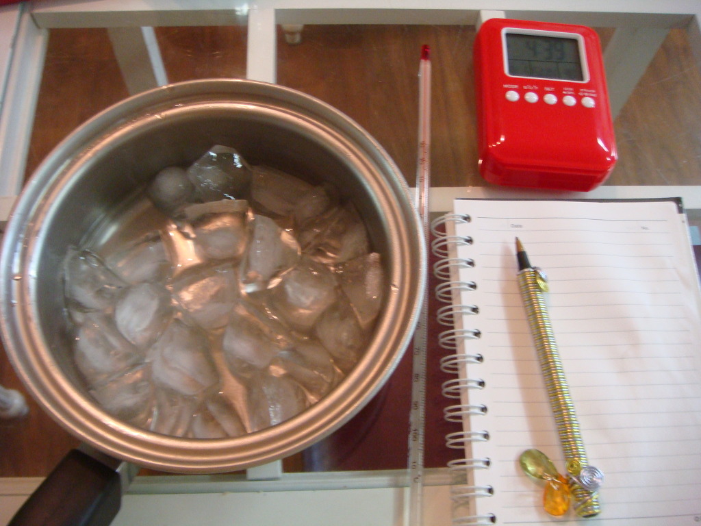 준비물: 냄비, 필기도구, 초시계,얼음 /얼음 가열 전: 0도씨