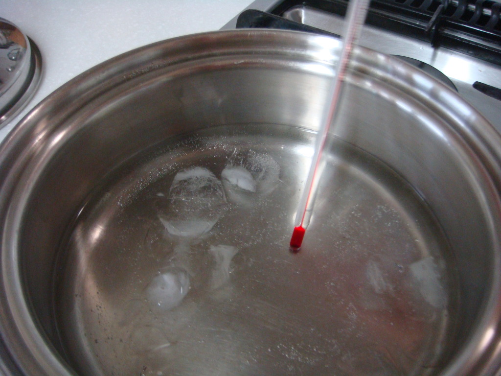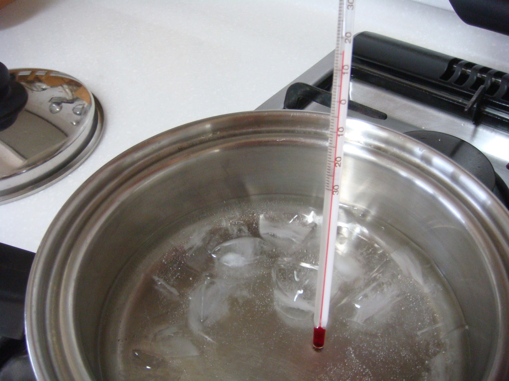 3. 온도계가 냄비의 밑바닥에 닿지 않도록 한다. 냄비의 온도가 측정되어 물이나 얼음의 정확한 온도를 재지 못한다.