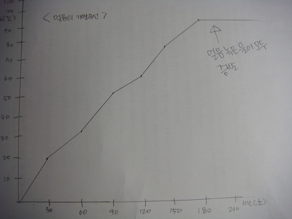 -이 실험의 결과를 그린 얼음의 가열곡선-