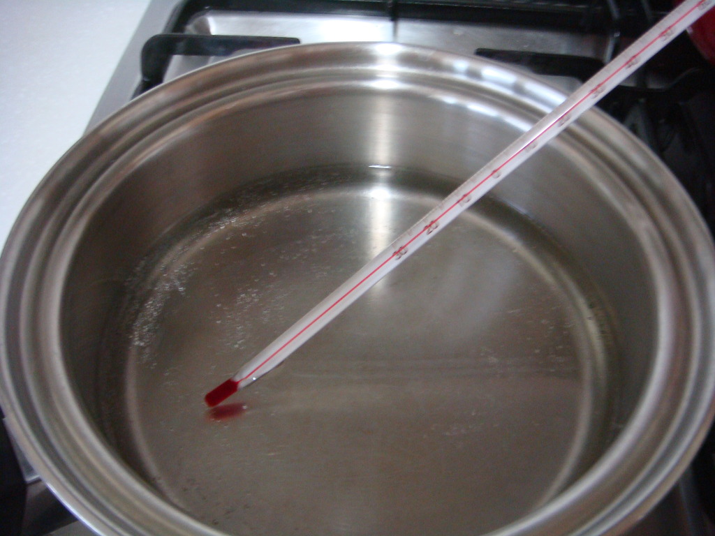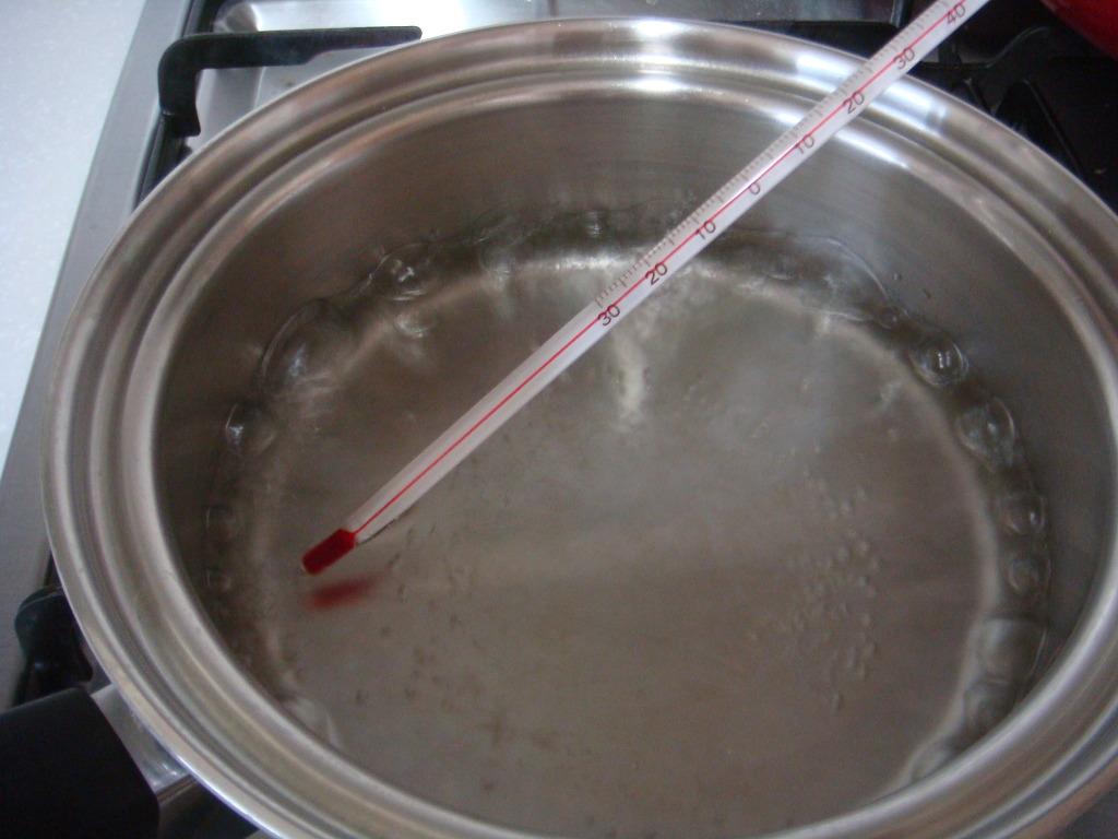 3분 뒤: 94도로 기포가 더 커지고, 움직임이 빨라지고, 부글부글 소리가 나는 것으로 보아 끓기 시작했다.