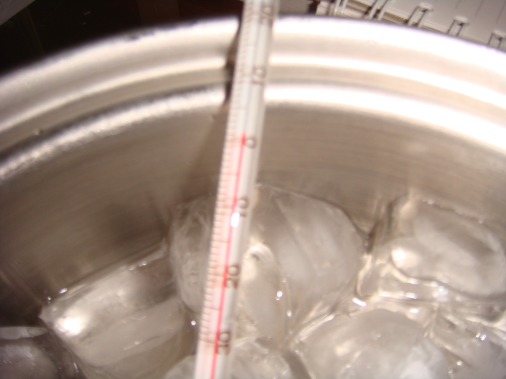 (냄비에 얼음을 넣고 온도를 재었다.)