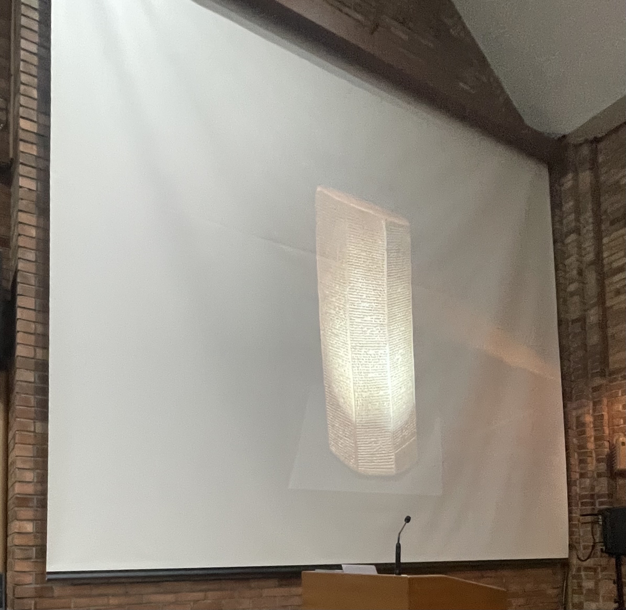 산헤립의 실린더 혹은 프리즘인데 흙을 구워서 만들었고, 쐐기 문자로 자신의 업적을 기록했습니다.(자신이 정복한 46개의 유다의 성읍들의 이름을 기록했는데 그 이름들이 미카서 1장에서 발견됩니다)