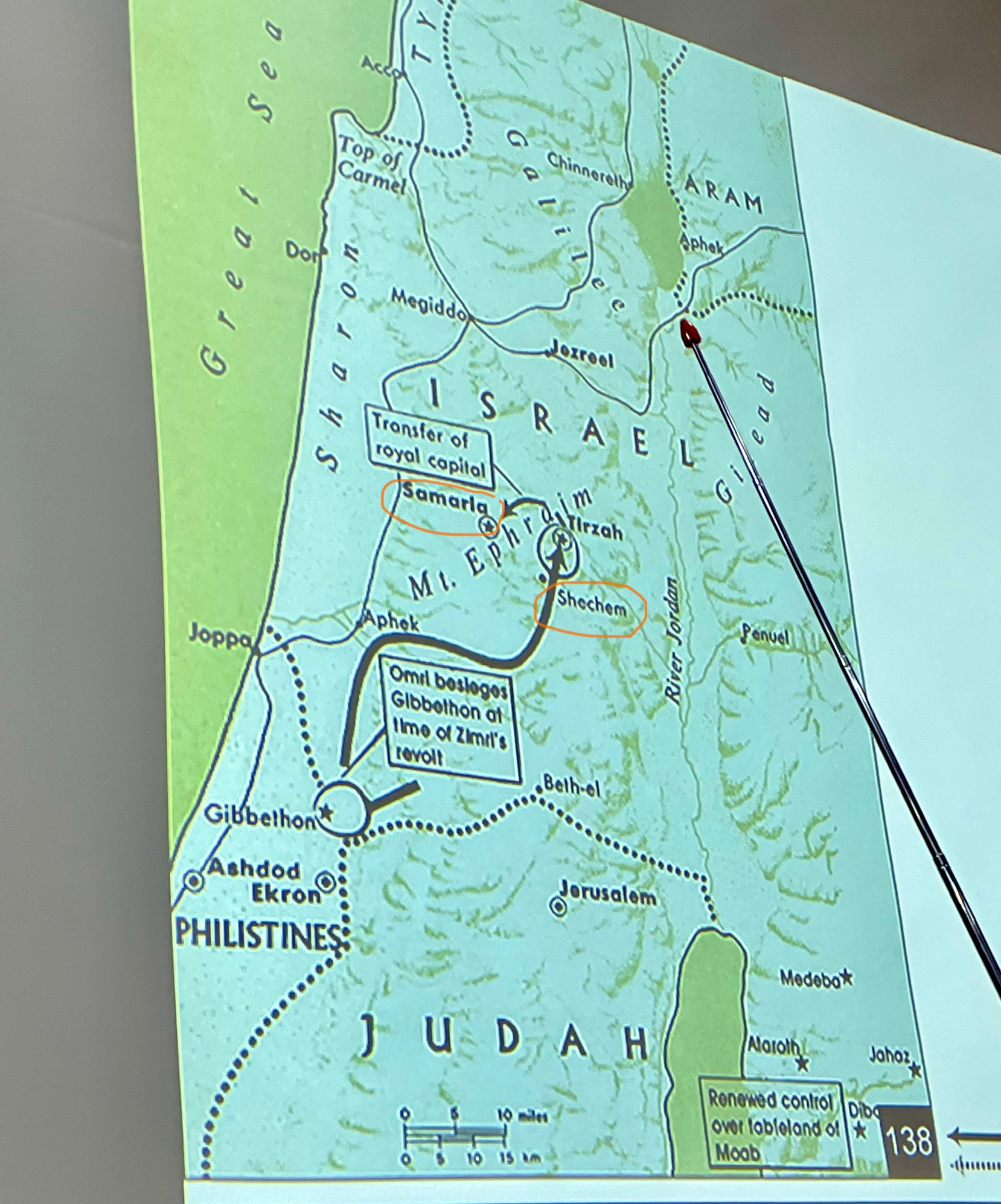 스켐에 있다가 프누엘로 갔다가 티르차로 갔다가 다시 사마리아로 옮겨가는 수도가 네 번정도 바뀌는 북이스라엘의 모습을 볼수 있습니다.