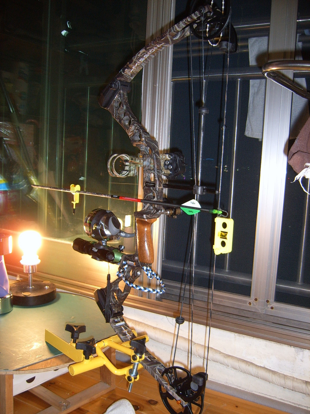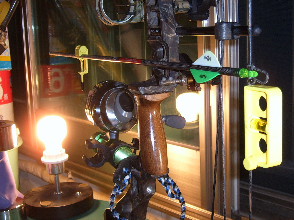 스테비 자리에 릴시트를 장착하고 클로즈드 페이드릴을 장착합니다...하는 김에 레이저 튜닝기 걸어서 레스트 센타랑 화살 수평을 맞춥니다.-사진 찍을때 조준기를 달아 버려서 튜닝기는 안보입니다..- 백번 보는것 보다 한번 해 보는것이 역시 머리에 잘 남습니다...ㅎㅎ