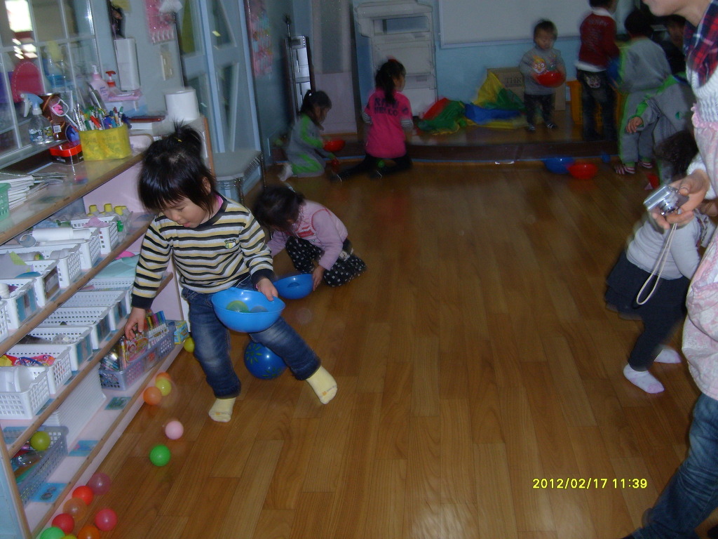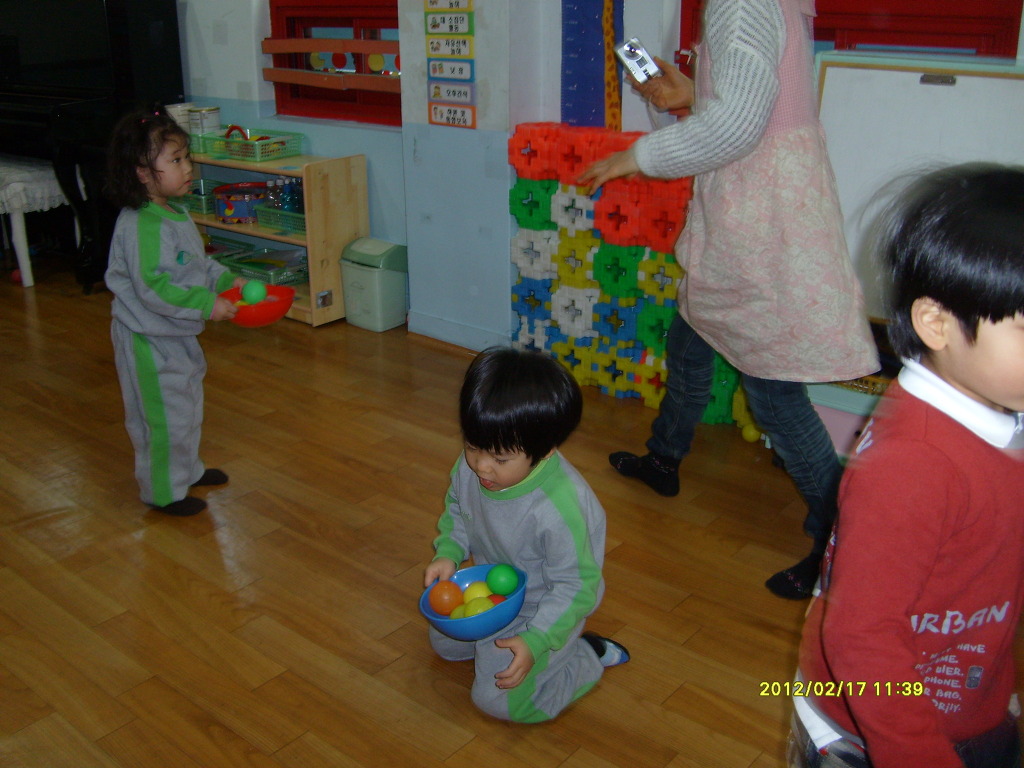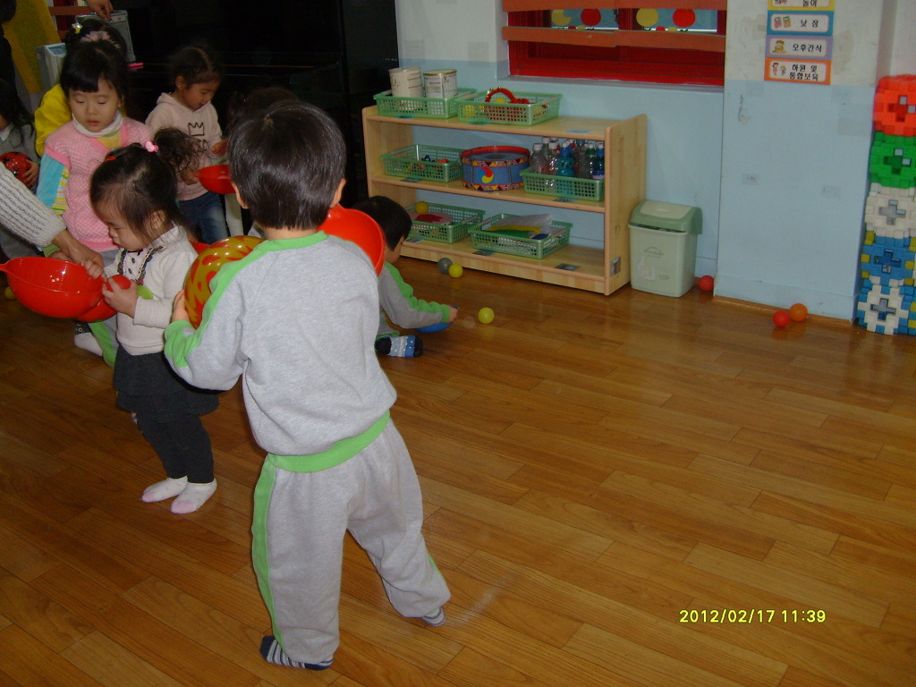바가지에 알록달록 공을 담아 정리해요
