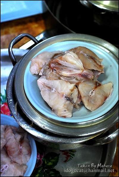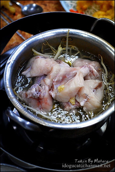 콩나물과 육수만 들어있는 냄비에 우선 2인분의 냉동복이 들어가구요.