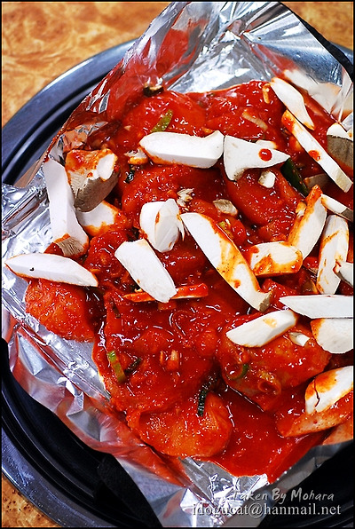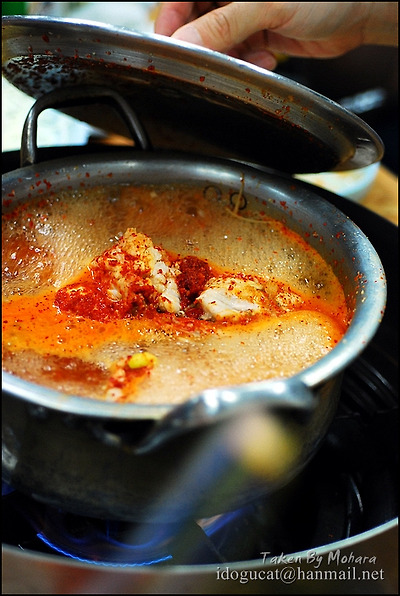 많은 다진마늘이 들어가고, 매운 맛을 위한 양념 또한 많이 넣은 후 끓이기만 하면 매운탕이 완성되는 것입니다.