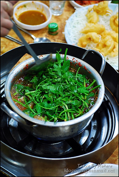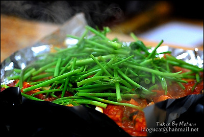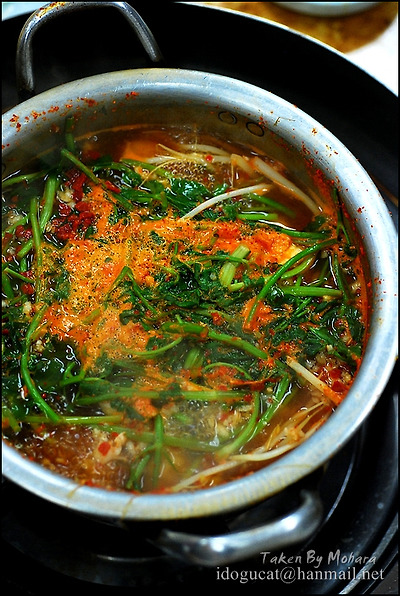 거의 다 익혀졌다고 생각될 때 미나리를 넣고 한번만 더 끓여주면 준비완료입니다.