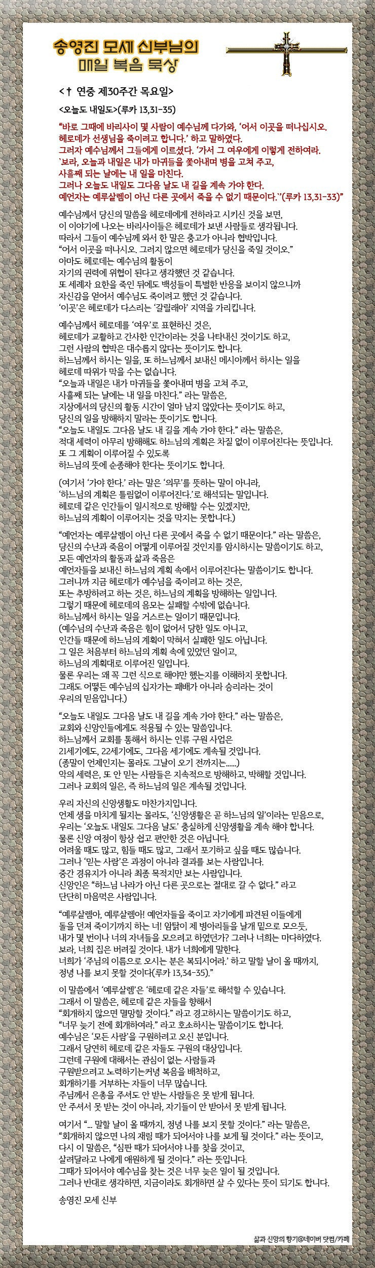 ✠ 루카가 전한 거룩한 복음입니다. 13,31-35