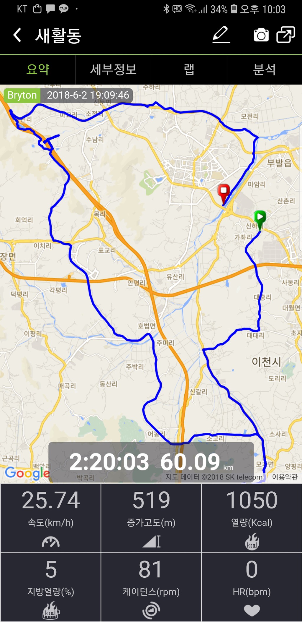 신하리 출발 만석고개넘어서 항작사 산내리 업힐후에 다운해서