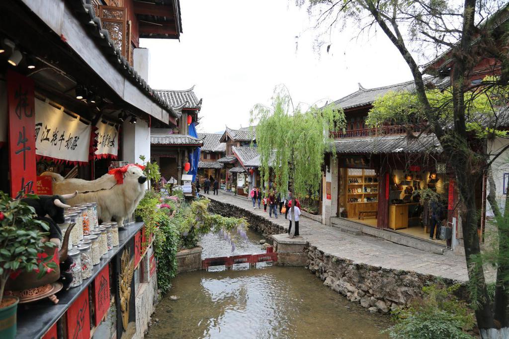 옥룡설산 만년설 녹은 물은 시내 수로에 흐르고~~