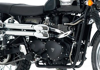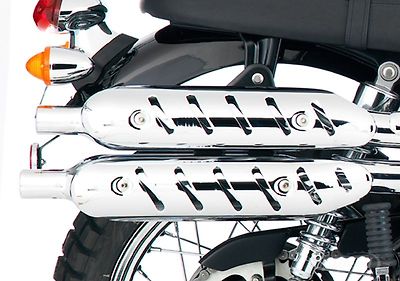 - The high-level chromed stainless exhaust pipes, retro styled silencers and evocative heat shields are all key to the Scrambler’s unique look.