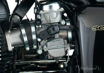 - The Scrambler features a fuel injection system designed for clean running and to meet forthcoming Euro 3 legislation. The retro styling remains uncompromised though, as the fuel injectors are cleverly concealed by throttle bodies designed to look like traditional carbs.