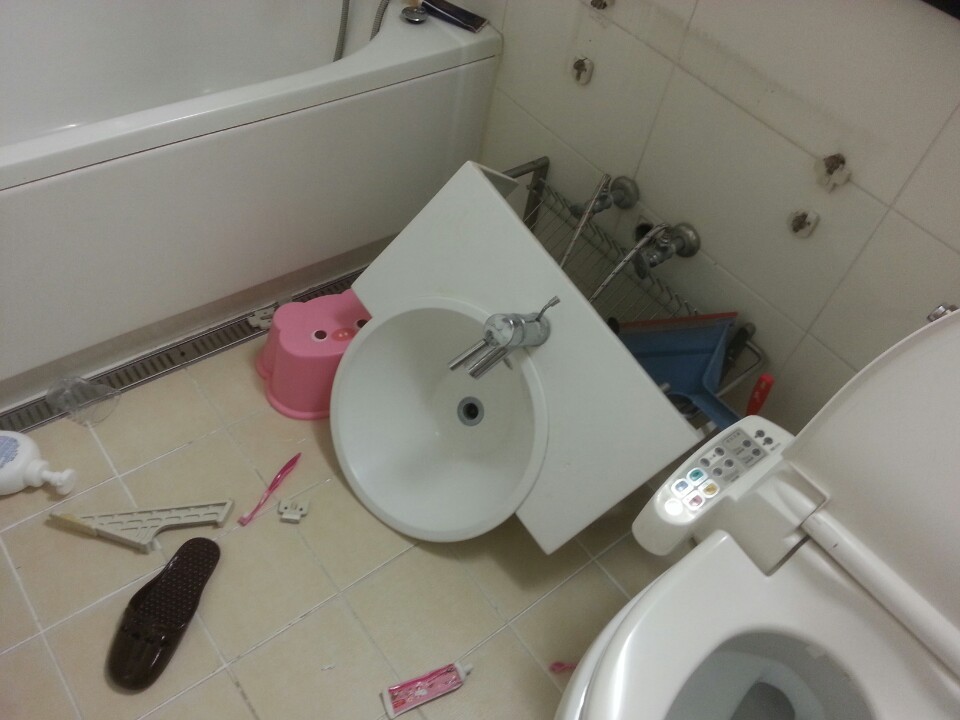 평소에 발올려놓고 발씻고 막그랬더니 좌측상단의 나사홈이 작살나더니 약간 기우뚱 하더니 좀전에 아이가 세수하다가 떨어졌다고합니다