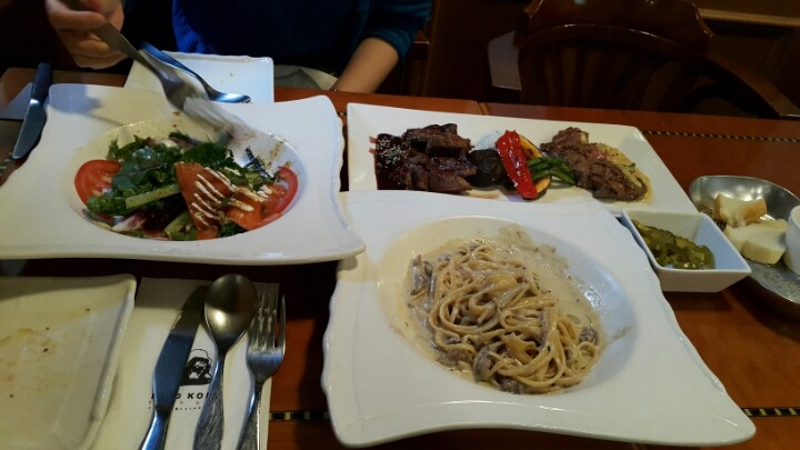 연어샐러드와 비프파스타,킹콩스테끼ㅎ