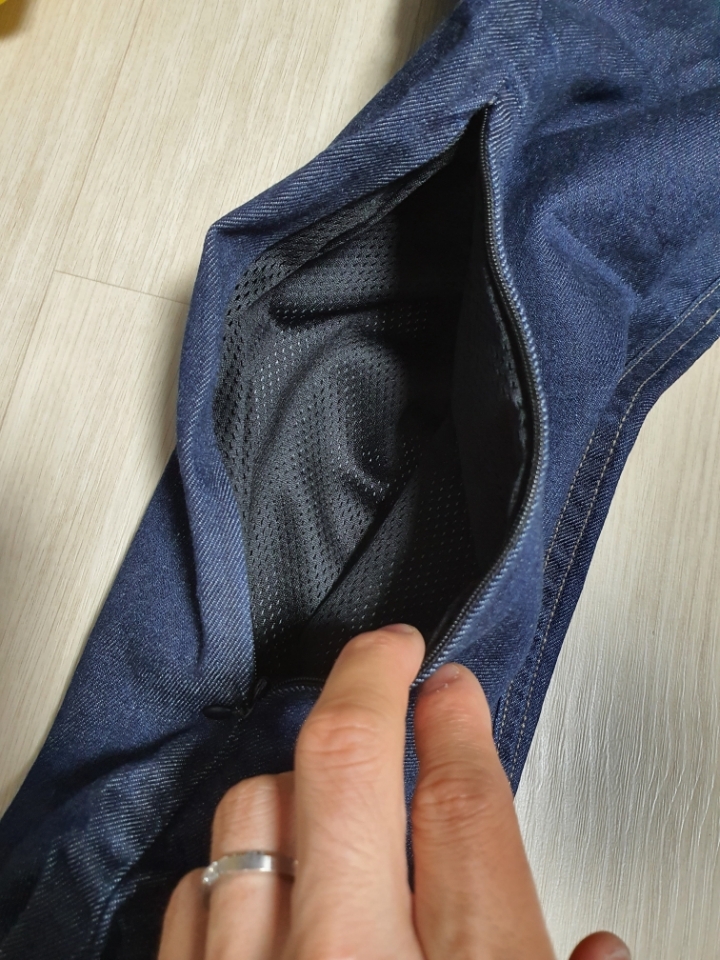 이렇게 지퍼를 열면 무릎 보호대를 넣을수 있게 되어있습니다.