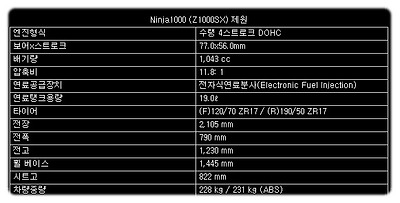 일본 내수 모델명은 Ninja-1000!! 얼마전 꽂혀서 사고 싶기도한 초고속 투어러중 가장 스포티하고