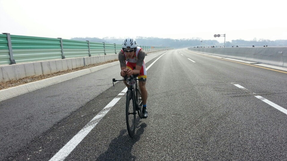 5k 오픈구간부터 40k 평속이상으로 나 홀로 독주 ( 사진은 경찰 사이카에서 찍어주고 있음 ㅎㅎ)