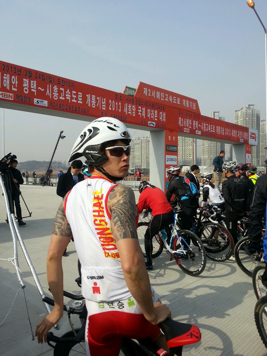 약 만명의 자전거 매니아들이 참가 ~~출발 직전 아들 김프로의 모습 ~~누굴 찾고 있는 듯 ㅋㅋ