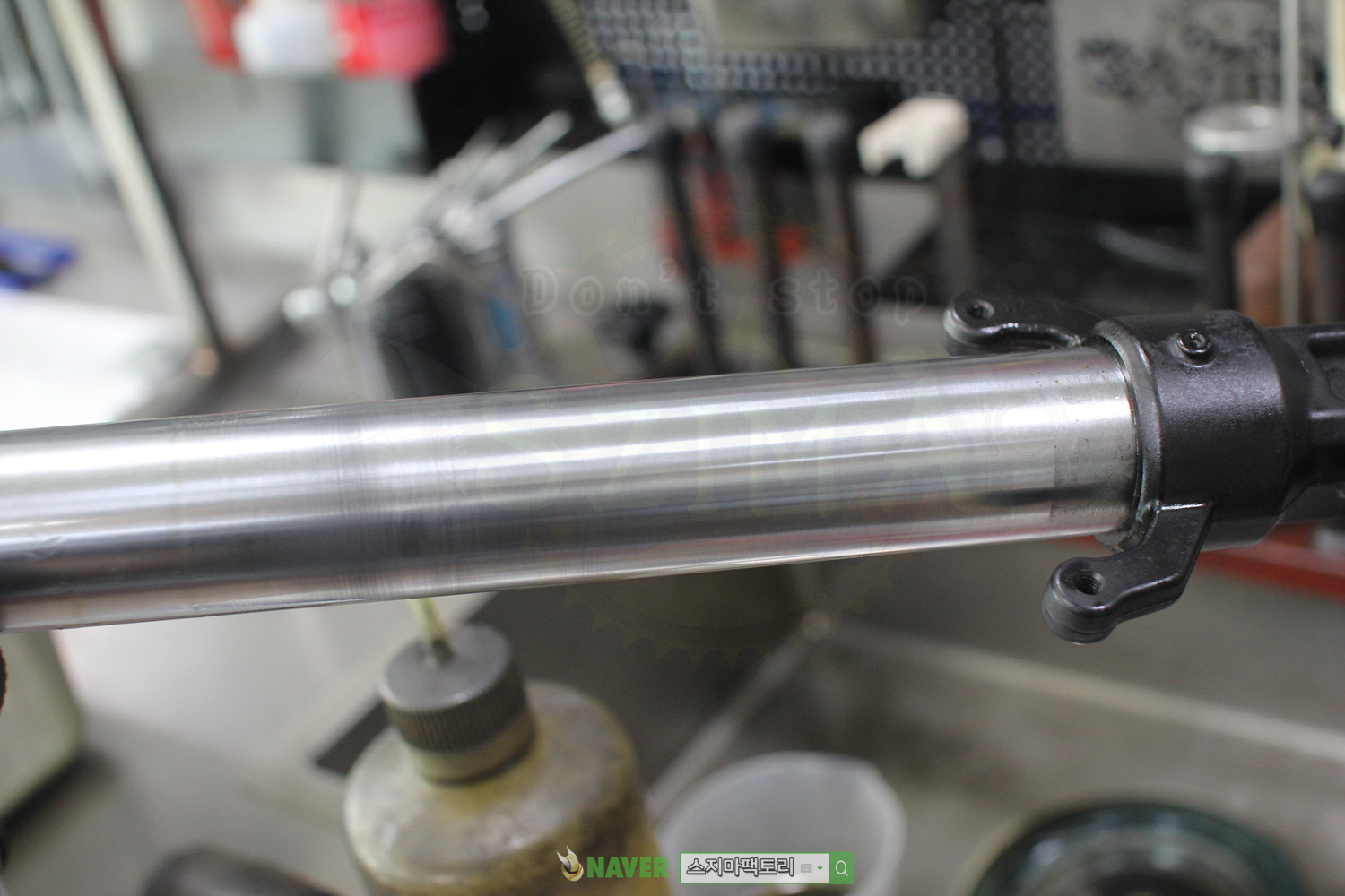 실린더에 하던 크로스엣칭...까지는 아니고 세로줄이 너무 심해 선반으로 돌려서 사포질로 표면 정리.
