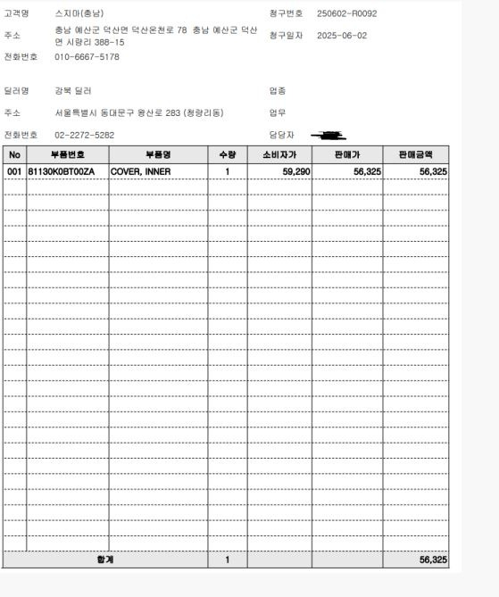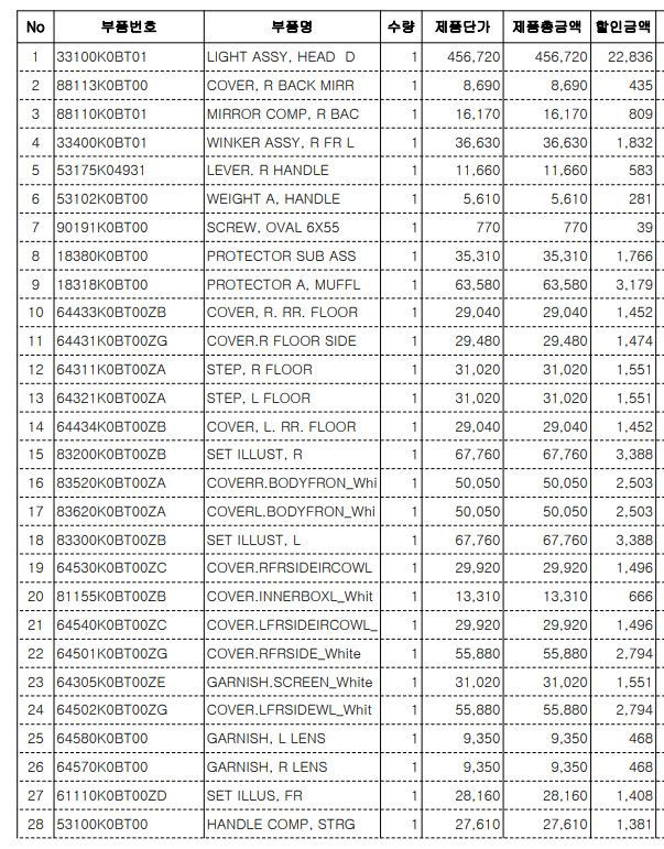 해당 부품을 수입사든 어디든 그 부품을 구매한 내역을 달라는거죠.