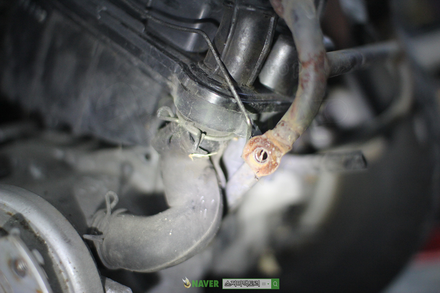 구동계에서 에어클리너박스로 올라가는 호스 중고 교환.