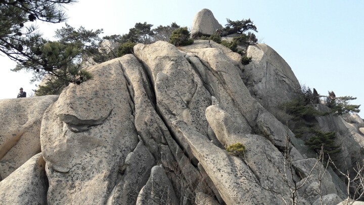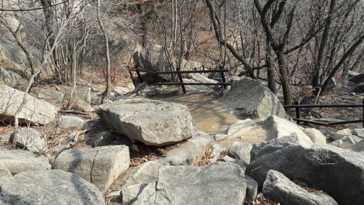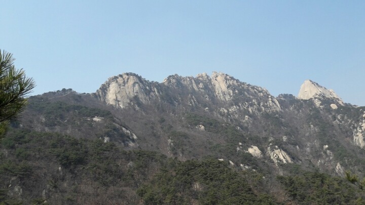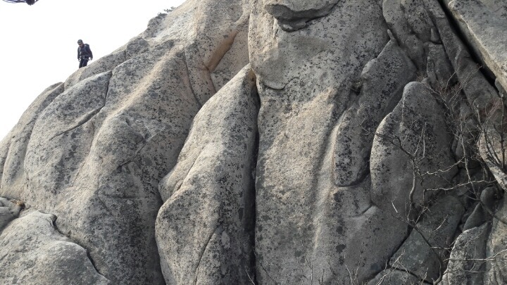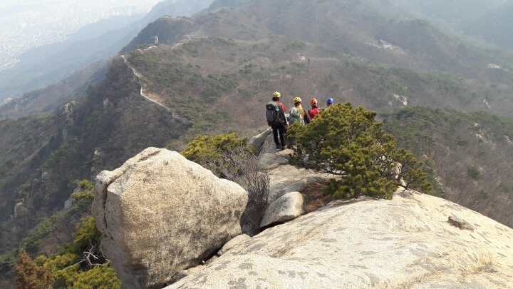 용암봉과 만경대 사이의 골짜기를 치고오른다.
